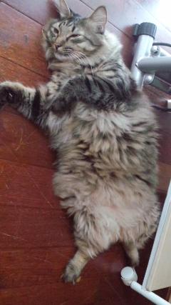 猫背になったら困るから定期的に伸びてるの(=^・^=) |