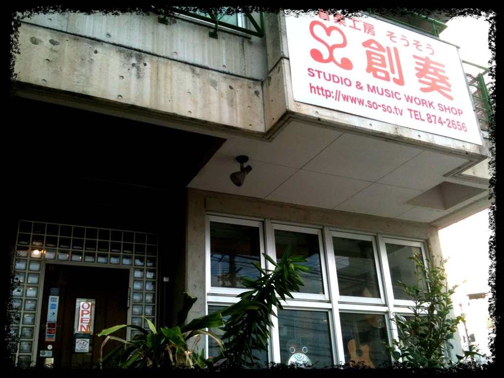 浦添中学校の向かいにある、「音楽工房 創奏」。