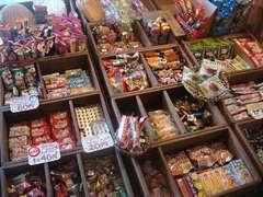 座敷は昔ながらの畳敷き。ノスタルジックな空間が広がります | 氷削機もいい味を出しています | 懐かしい駄菓子も販売。食後についつい手が伸びてしまいそう。。。 |