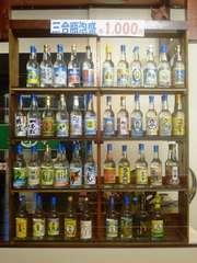 県内各酒造所の泡盛三合瓶(40種以上)を1,000円でお楽しみいただけます。