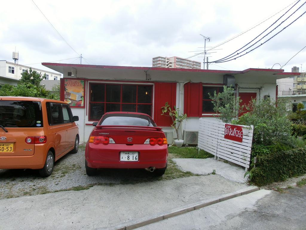 浦添の港川。外人住宅が並ぶ街並みの入り口ともいっていい一角にある、自家製の生パスタを提供している『cafe BARVALE(バルバーレ)』。白壁に赤の窓枠と戸・・・