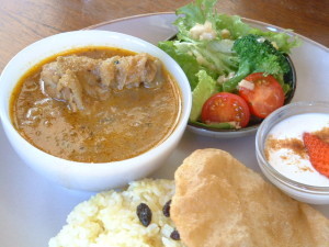 野菜カレー 880(ミニサラダ・プーリー・ライス・ヨーグルト付き)